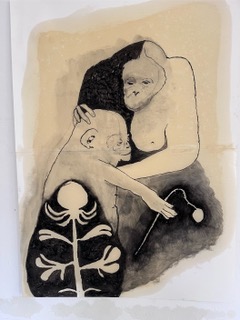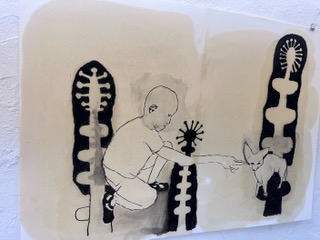 Meine letz­ten Arbeiten zeu­gen von Beziehungen zwi­schen mensch­li­chen, pflanz­li­chen, ding­li­chen und tie­ri­schen Erscheinungen, zeu­gen von der Verbundenheit der Akteurinnen sowie dem ganz eige­nen Charakter der Einzelnen.